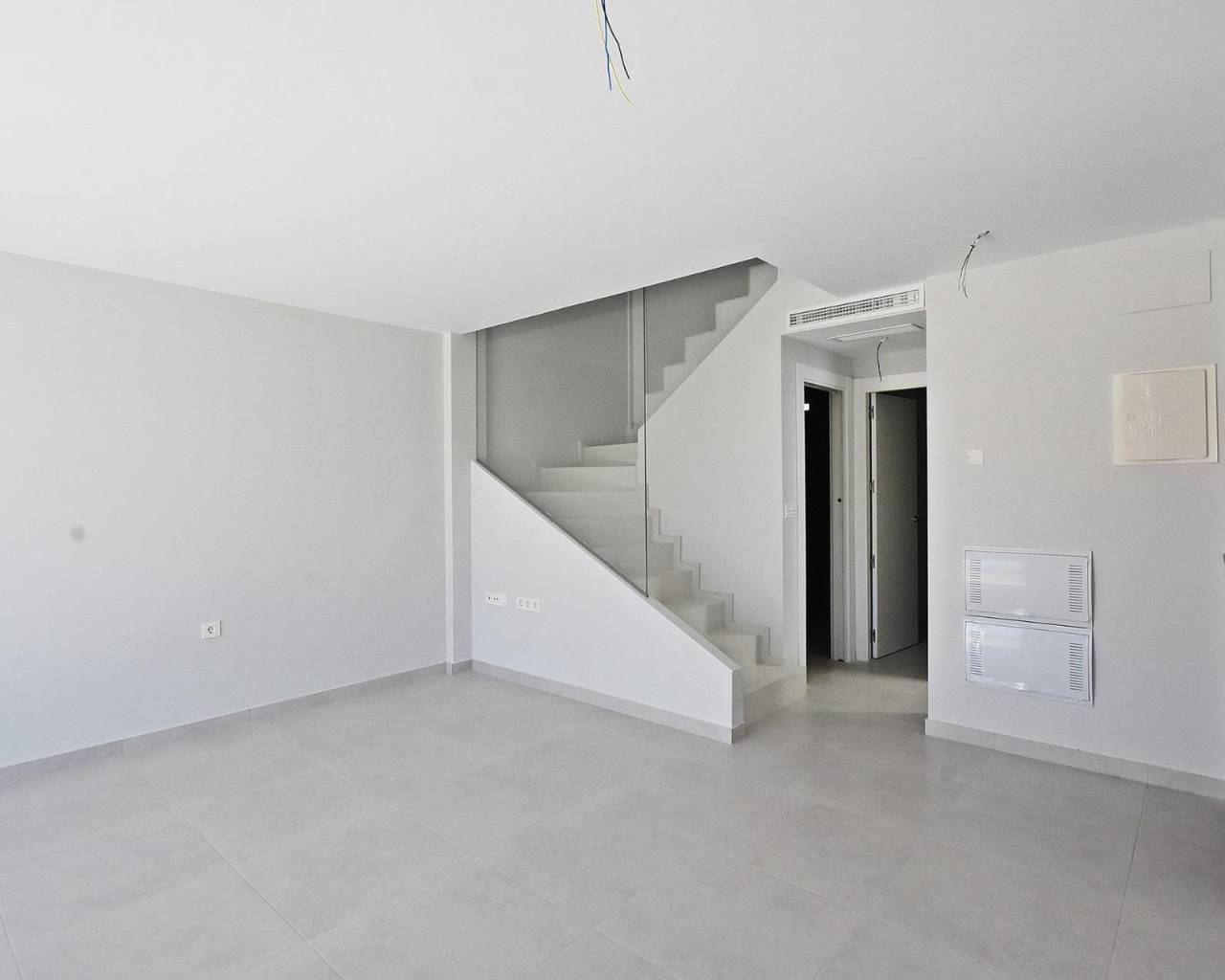 These homes are built with quality materials and include a reinforced entrance door, pre installation for ducted air conditioning, bathrooms with furniture, mirrors and shower screens, hot water system powered by aerothermal energy, electric blinds in bedrooms and main facade openings, and aluminum exterior carpentry with double glazing. The kitchen is delivered without furniture, allowing buyers to personalize it to their taste.