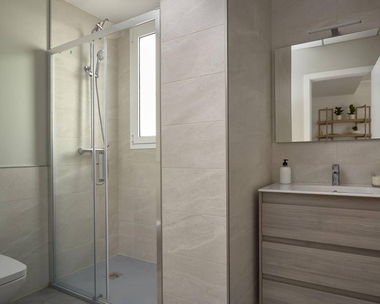 NEW BUILD RESIDENTIAL COMPLEX IN VERA New Build residential of apartments in Vera just 400m from the huge Vera beach named "El Playazo". The typologies are ground floor with two private gardens, one in each orientation, which allows you to enjoy sun or shade whenever you want depending on the time of day or the season of the year. The first floors have terraces and the penthouses have large solariums. All the apartments have extra height ceilings (2.95 m) providing a great feeling of spaciousness. The kitchen comes fully furnished and equipped integrated with the living-dining area with a bar area. The doors and fitted wardrobes are lacquered in white and the floor is made of laminated wood. The hot-cold air conditioning and the hot water are generated by a state-of-the-art DAIKIN Aerothermal device, a technology that saves up to 70% of electricity consumption compared to traditional systems. All bathrooms come with a shower instead of a bathtub, with recessed mirrors and also with a stone countertop and glass partition in the main bathroom. The blinds in the living room and master bedroom are electric, hermetically sealed and with adjustable slats. The gardens and solarium are delivered with the floors finished combining artificial grass and a beautiful paving imitating wood. Each house includes a private outdoor parking space. Each block of the promotion has an independent elevator. Both the buildings and the apartments have a series of bioclimatic architecture characteristics (orientation, insulation, windows and shutters, pergolas) that allow optimal natural regulation of ventilation, temperature and light throughout the different seasons of the year. The communal areas are made up of pedestrian squares and green areas, with a large swimming pool for adults and another for children in the central square. The entire urbanization is free of architectural barriers for the disabled. Here tranquillity and relaxation are guaranteed. Vera is one of the best naturist places in Europe, recognized for the quality and purity of their waters. It offers six kilometres of beaches (Las Marinas-Bolaga, Puerto Rey, El Playazo, Quitapellejos). Vera bordering with the famous tourist destinations such as Mojacar and the Almanzora Caves. Residential complex located about 1,5 hour drive away from Murcia - Corvera airport and about 2 hours away from Alicante airport.