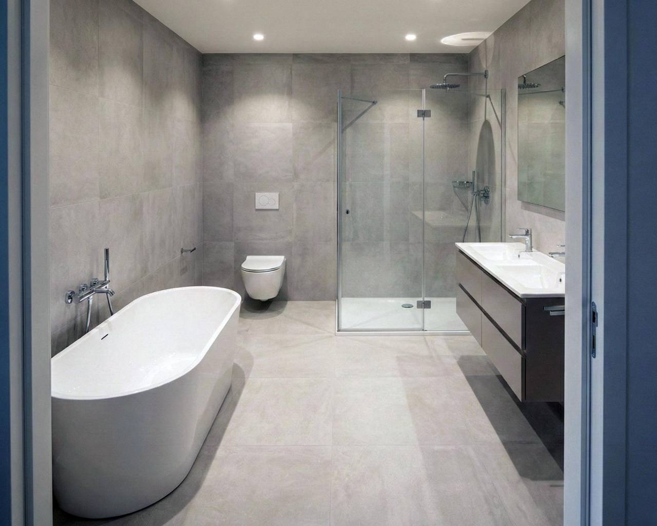 Stylish bathrooms with mirrors and shower screens
