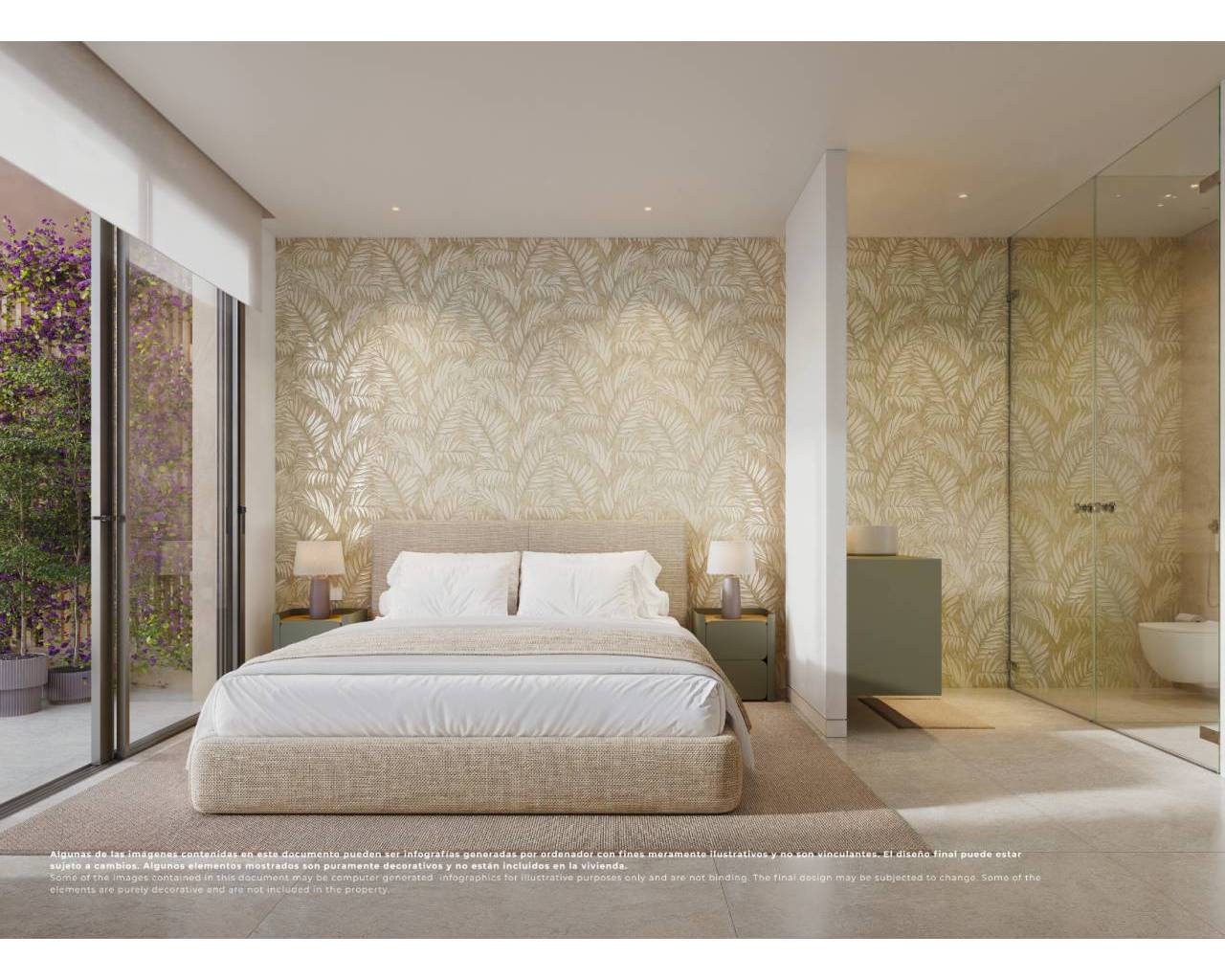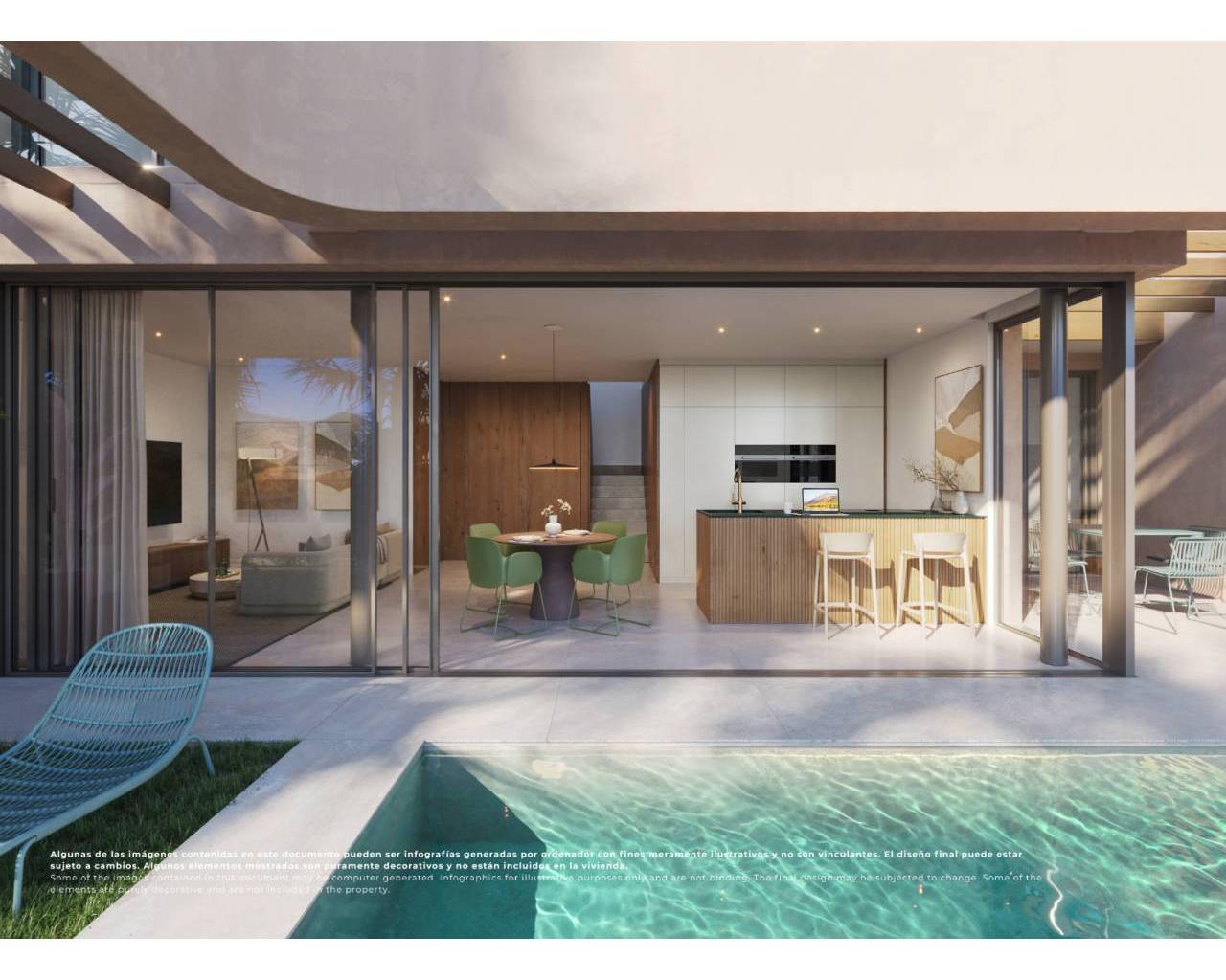 All properties feature modern open-plan living spaces, large open outdoor areas, luxury fitted kitchen including appliances, fully finished bathrooms, high quality finishes throughout, full hot & cold ducted AC, aerothermic water heater, automatic fire & flood detection system, use of communal pool and gardens, dedicated parking & storage.